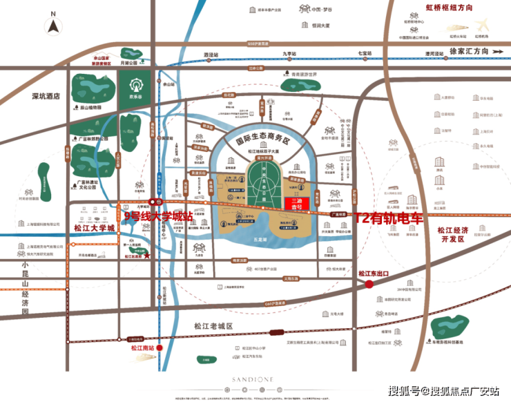 交通:9号线松江大学城站约1.7公里、T2有轨电车站点100米,自驾:G60沪昆高速。