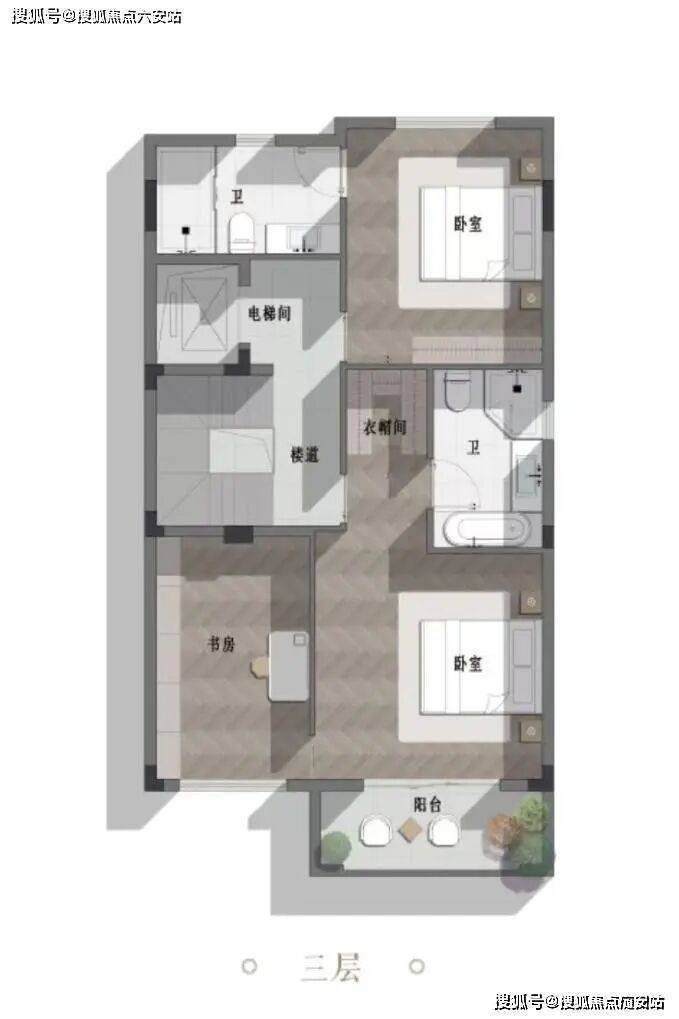 第三层,是父母的“二人世界”,以全维、全能的空间布局,让优雅与私密兼得。