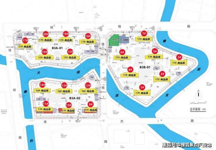 共20幢楼、16-17层的高层、标准层高约3米、架空层(约3.5米-4米)