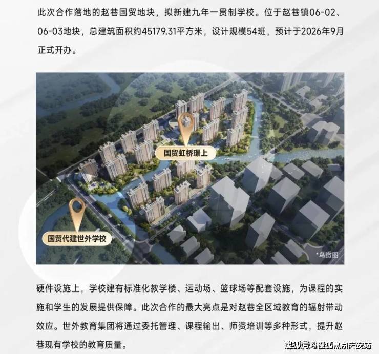 国贸为政府代建两所9年一贯制学校(小学+初中),紧邻项目西侧,一路之隔