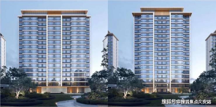 现代风格:立面利用大面积玻璃+阳台落地窗+金属型材+层间装饰提升建筑整体感和精致度,外立面大面采用浅色仿石多彩漆,浅灰色金属格栅,浅灰色玻璃,香槟色金属型材收边形成创造出建筑独有的人与自然、动静结合、丰富美观的轻盈质感,彰显住宅品质