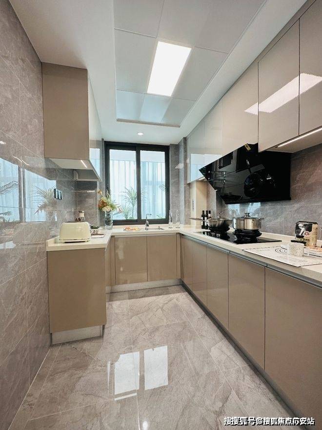 U型厨房设计操作动线合理,空间充足,烹调自如。