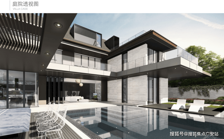 泳池里两旁的庭院,可以与亲朋好友相聚。