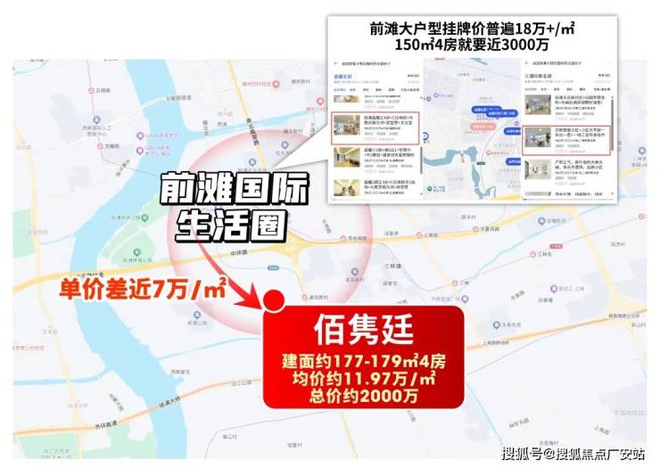 更重要的是,前滩作为“强锚点”,生活配套早已能满足高阶需求,区域内的改善客群无需为了更好生活离开,买房需求形成“内循环”(未来区域完成3房换4房)。佰隽廷既贴近核心,又有价格优势,既能承接前滩内部改善需求,也能吸引板块旁的高净值人群,流通性值得期待。