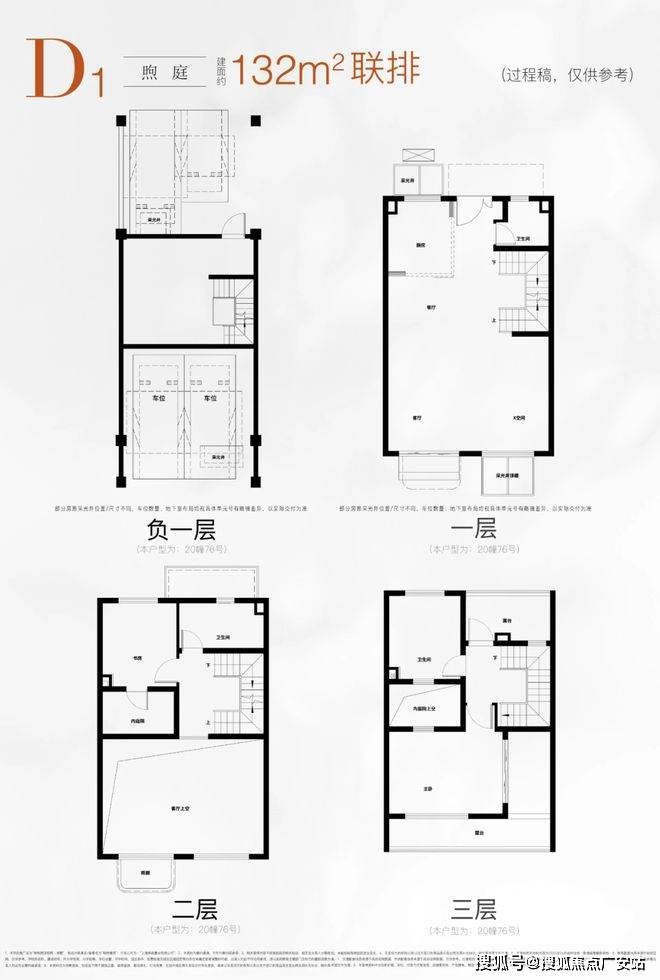 建面约132㎡的D1户型(联排)。乍一看,这是一个地下一层,地上三层的标准联排户型,从户型图上只能看到两个卧室。但仔细看的话,会发现许多令人惊喜的亮点~
