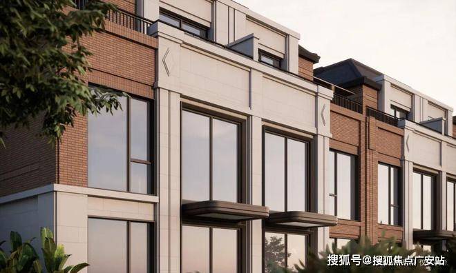 立面沿袭了嘉佩乐酒店的红砖元素,腰线运用深古铜色铝板,提取山墙、几何装饰等里弄建筑符号,以独具海派文化底蕴的红砖造艺,延续墅居经典三段式立面结构。