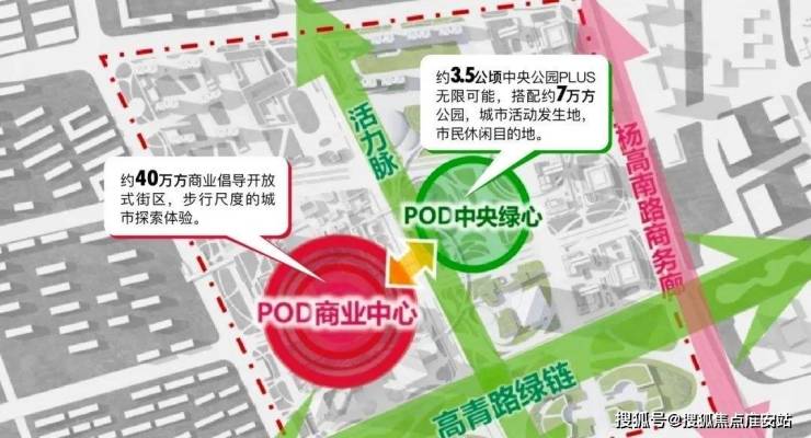 新杨思以公园为导向的功能混合开发模式,围绕公园与商业打造“POD中央绿心+POD商业中心”双心驱动,犹如将“世博文化公园”与“新天地”合而为一。