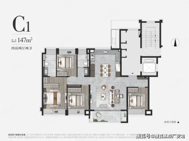 该户型贴合当代人居生活习惯,既适合三口之家小太阳家庭,也可以是三代同堂,每个人都能拥有独立空间。