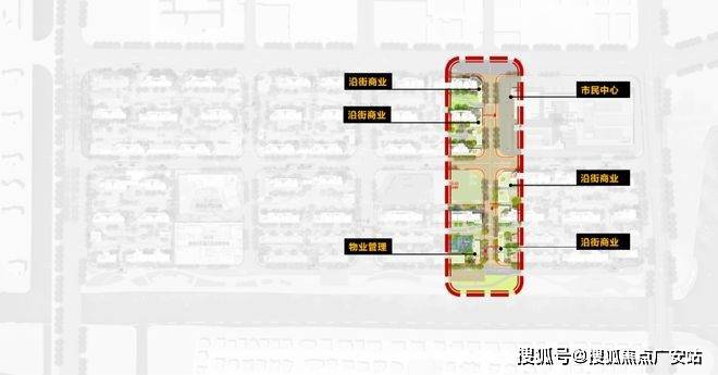 一街为活力商业街,通过纵向布局,在街道两侧配上丰富立体的商业,包括沿街商业、邻里中心、乐活商业街等,满足居民日常的需求。