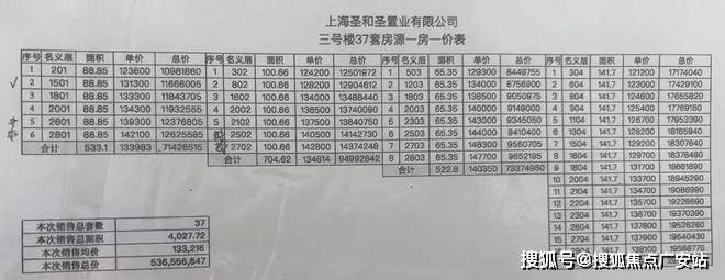最新一房一价表: