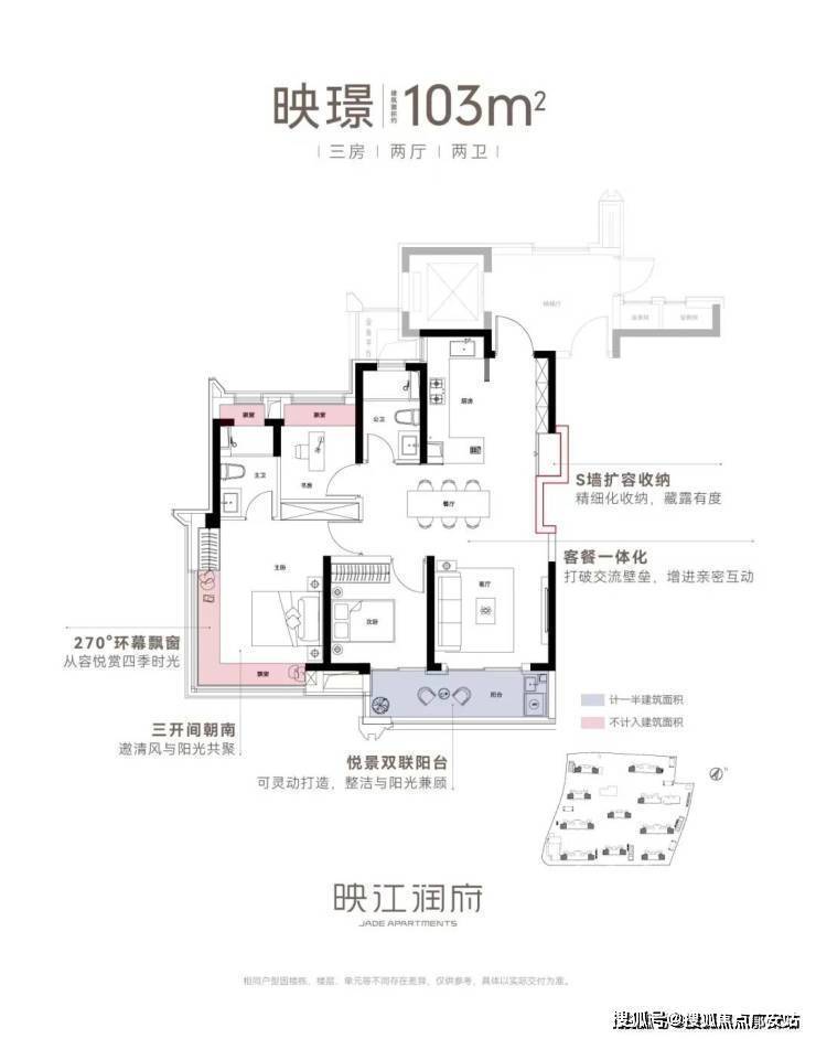尤其是103㎡边套,配备270°环幕飘窗,采光与观景体验完全可以媲美千万级豪宅!