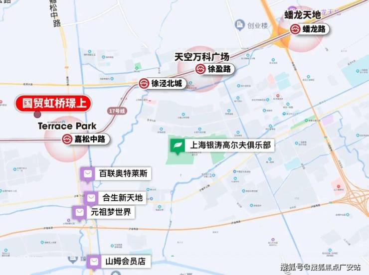 项目周边已成为上海人周末出行的打卡圣地,蟠龙天地、天空万科广场、百联奥特莱斯、合生新天地、元祖梦世界、山姆会员店等商业、休闲综合体一路连缀。