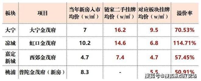 据贝壳数据统计,金茂府与同板块二手房相比,挂牌均价比板块均价高出50%以上,最高溢价甚至突破114.71%!