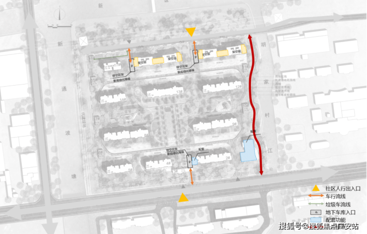 功能剥离:将配套用房集中设置于地块东南角,采用一层架空设计,减少汽车坡道对居住环境的干扰,提升社区静谧品质。