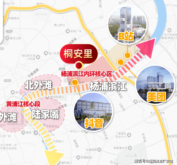 作为整个滨江带的资源汇聚之心,桐安里所在的中央活动区承载着杨浦区最高能级的城市功能域配套: