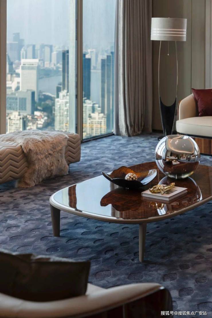 眼前是碧波荡漾,静静地透过落地窗户!那是百年外滩和滚滚黄浦江,天际线与地平线壮丽景色尽收眼底!这也是外滩,如此高度唯一无边泳池!