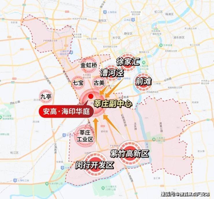 但若你从地图上看,莘庄恰好就处在“心脏”地带,漕河泾、七宝、莘庄工业区、航天城、闵开发、紫竹就像众星拱月般将莘庄环绕在中间