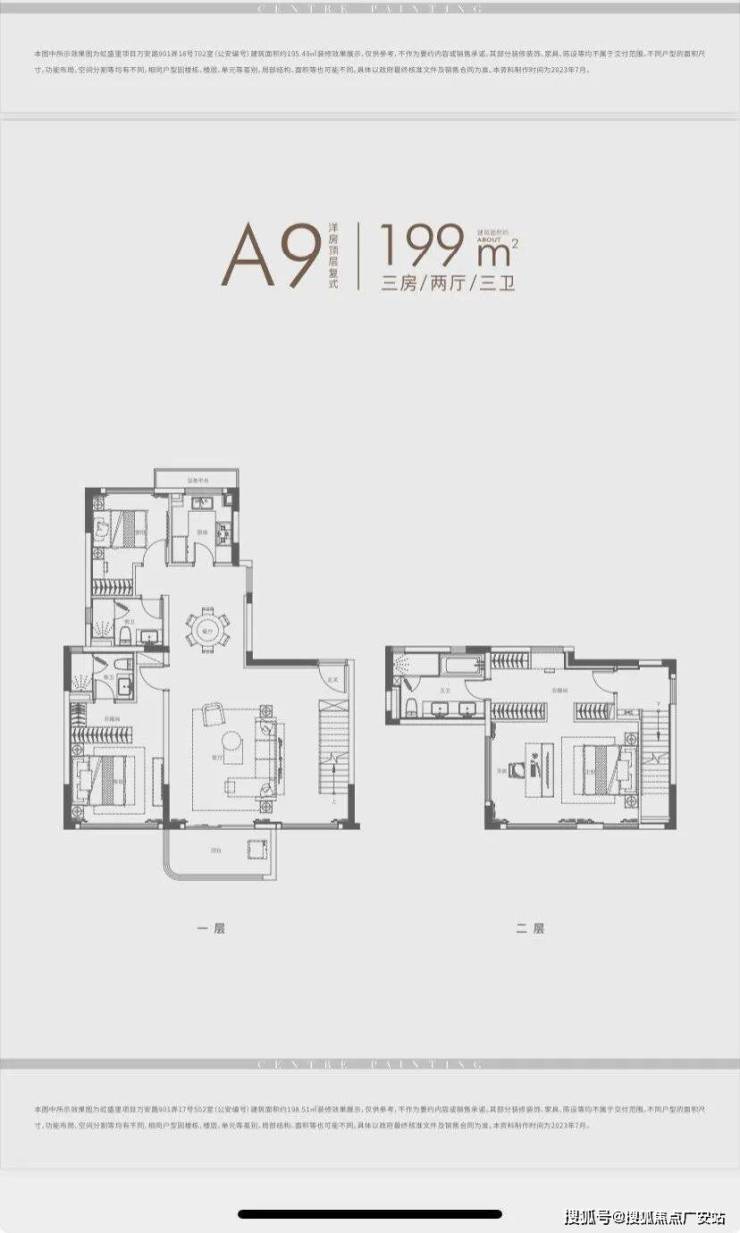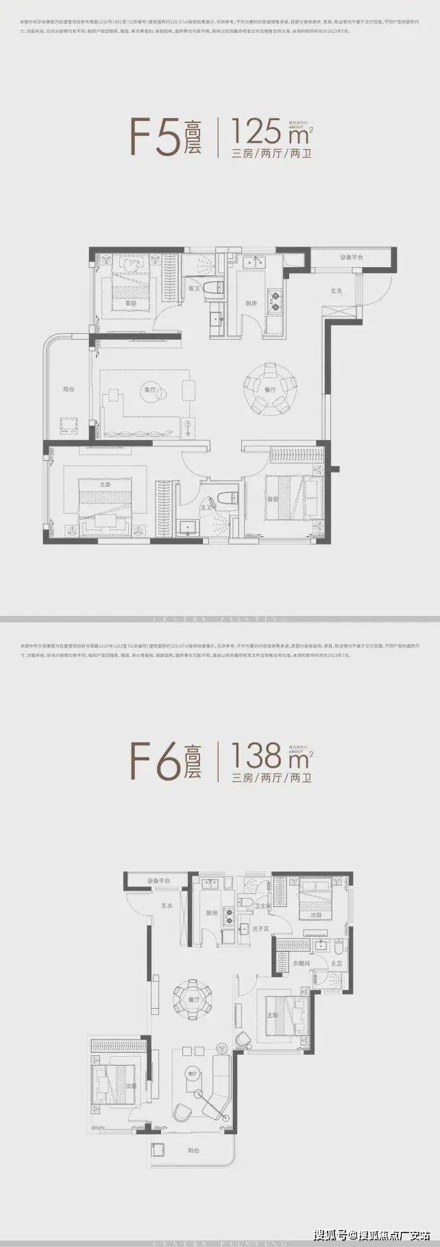 ①、建面约120㎡3房: