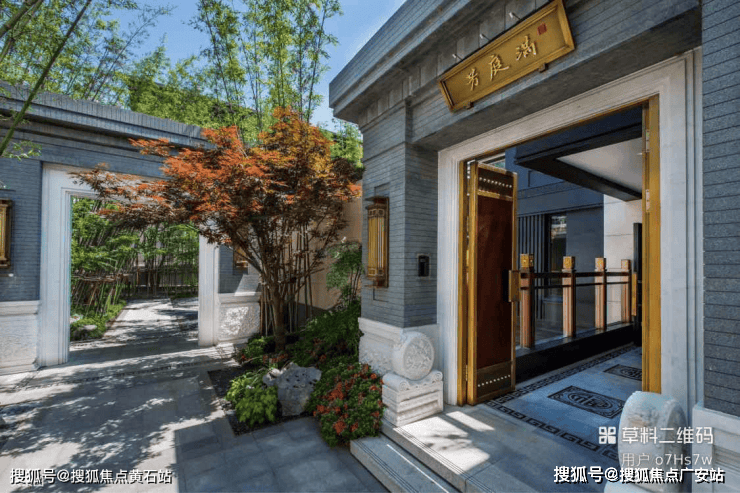 主入口宽20米、高8米,采用黄色木纹洞石、汉白玉、黄铜等名贵材料,搭配以《千里江山图》为蓝本的影壁墙,彰显磅礴气势。泰禾海上院子售楼处电话:400-998-7894📞