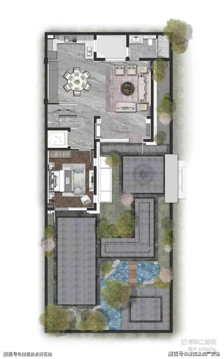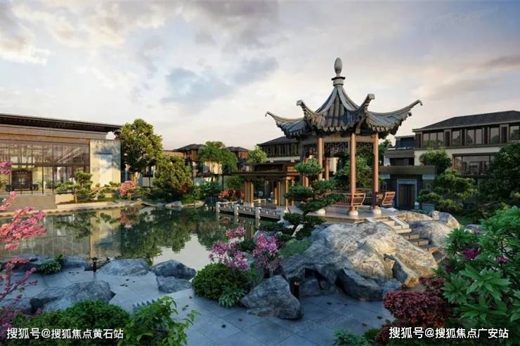 社区内部以“一轴五街八园十二巷”布局,融合北派皇家园林与苏式园林特色。约3500㎡中央景观区融汇山池、六角亭、戏台、石舫等中式经典要素,实现一步一景的诗意居境。