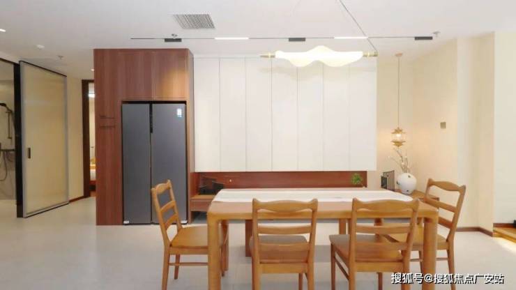 餐厅延续了整体的宋氏美学风格,餐桌椅的设计简洁而不失优雅,实木材质散发着自然的气息。桌面纹理清晰,触感细腻,椅子的线条流畅,让用餐者在享受美食的同时,也能感受到舒适。