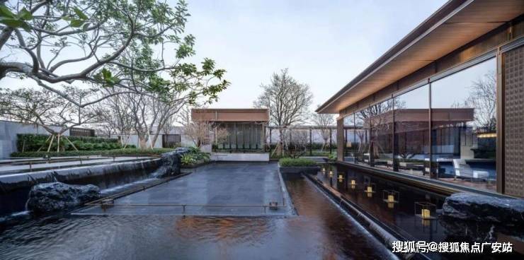 海上瑧悦,中水系形态变化丰富,通过200米、近1000平的静水、跌水、涌泉、瀑布等不同的形态诉说传统东方文化水系的不同寓意。复刻“张园”三大水系的二次营造,围绕楼王布置,贯穿入口、启动区庭院、仪式归家轴线、超级引力中心,形成流动灵活的水系。