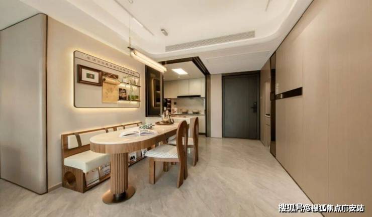 考究到像素级的户型设计,又进一步放大了它的质价比。首开的建面约97㎡的三房两卫,玄关设计了S墙(可以放冰箱),厨房做了3折叠玻璃门+岛台。