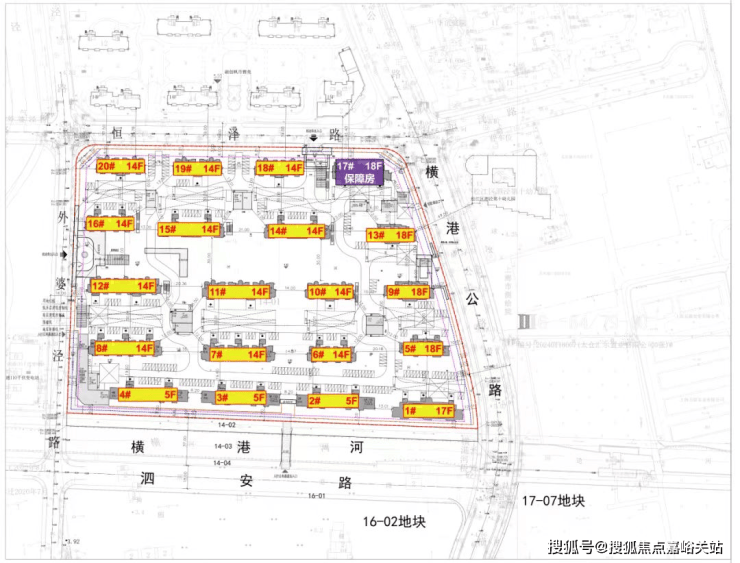 根据设计方案显示,14-01地块拟建12幢14F小高层,4幢17-18F高层,3幢5F多层,1幢层高18F的保障房。