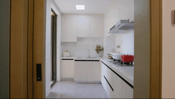 客厅连接阳台,正如样板房这样,宠物也能拥有自己的小天地,既可改造为休闲区,亦可作为储物空间,小户型也能拥有大生活。
