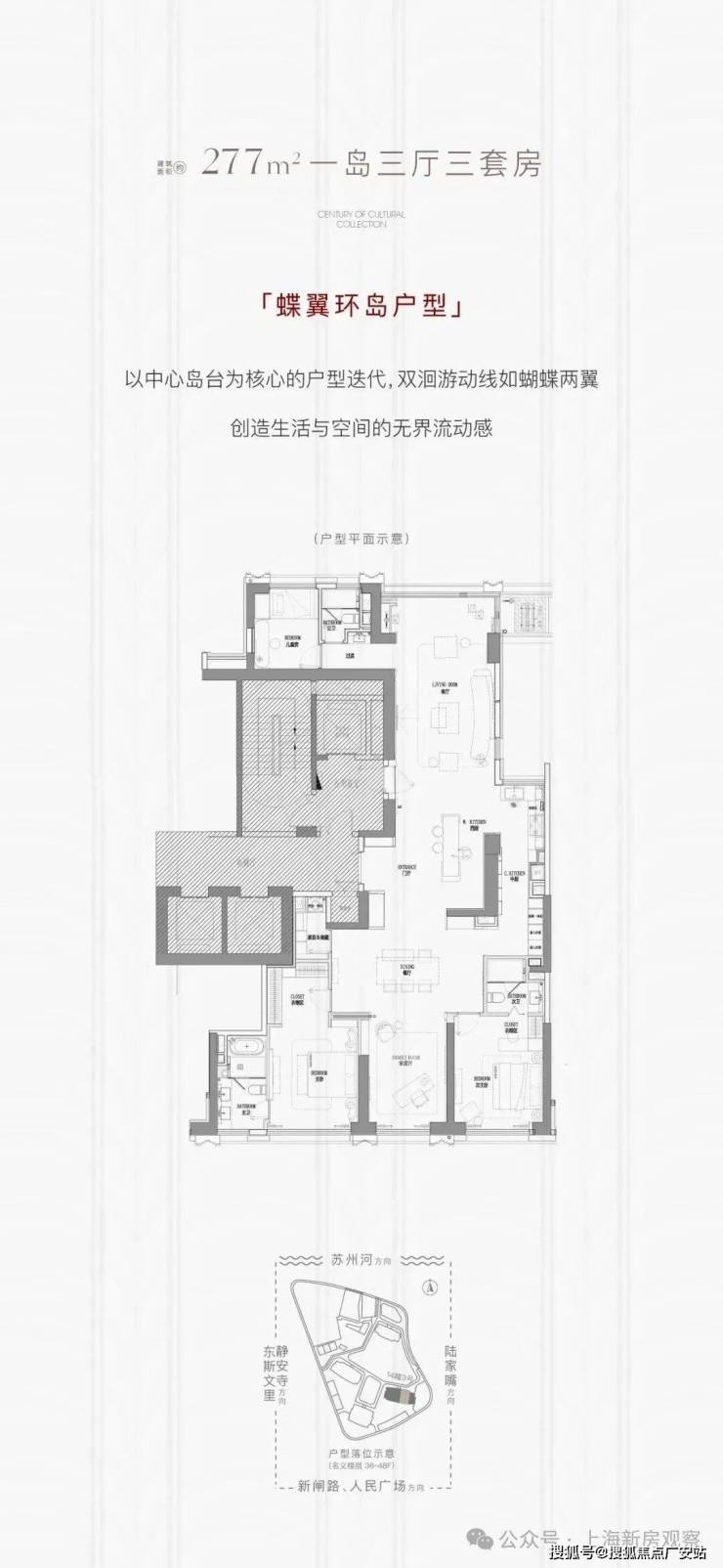 超高层住宅部分位于1号地块,主力户型建面约193-600㎡,均价约14.5万/㎡,部分楼栋可俯瞰苏州河及城市景观。