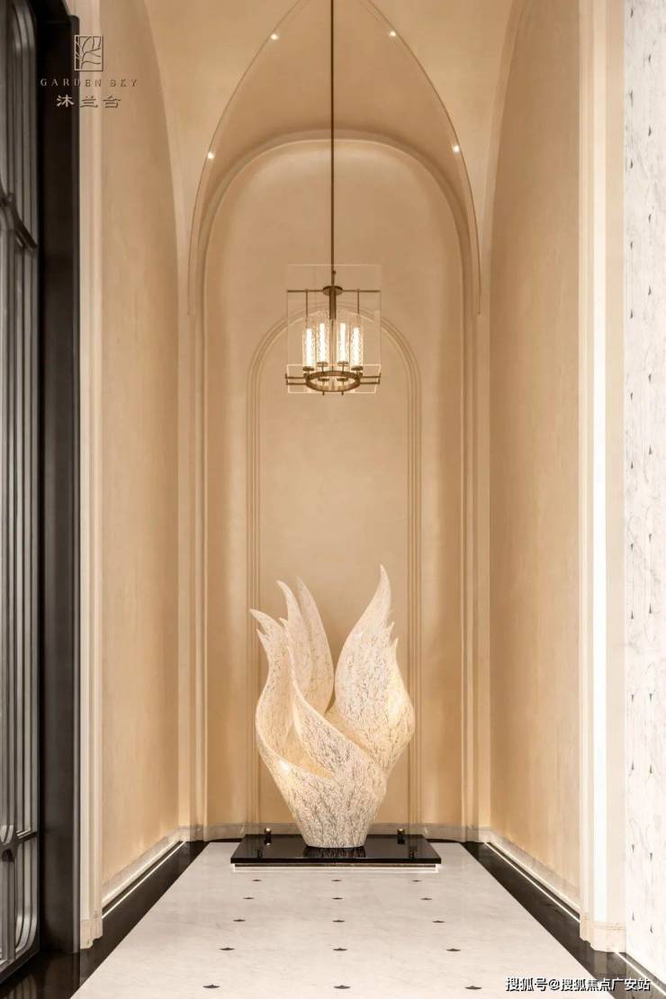 穿过大门,在光影浮动间,你迈进挑高归家大堂,就像闯进了一座美学圣殿。这处归家场域灵感来自哥本哈根的格伦特维教堂,采用拱券造型,再铺就雪花白、宝格丽粉奢石,艺术之美任谁也抗拒不了。