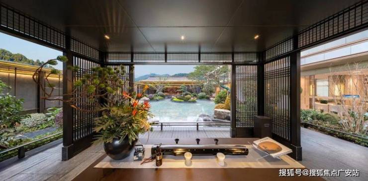 Jing珹 continues the style of deep eaves, featuring a large pitched roof combined with Chinese black tiles to achieve an aesthetic effect that ADAPTS to The Times.