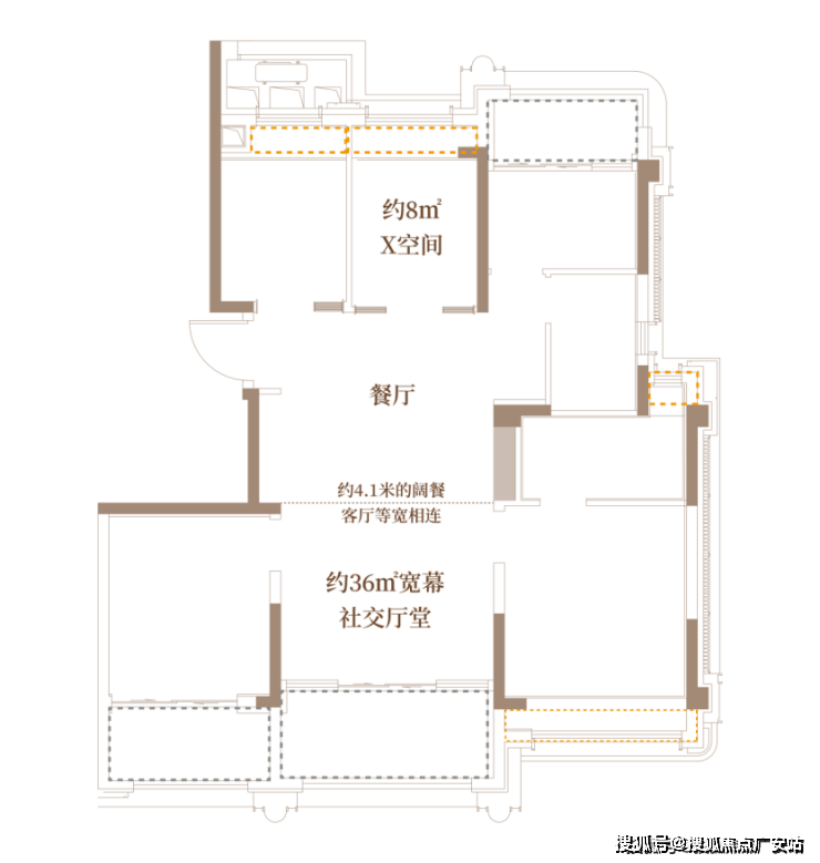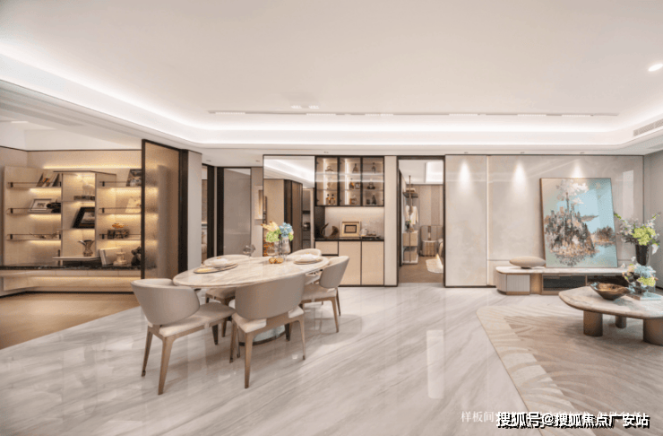 用三厅一体的空间场景设计,重塑生活体验,实现会“长大”的家。约36㎡宽幕社交厅堂,其中,约4.1米的阔餐客厅等宽相连,罕见的容纳6人圆桌,装得下两胎三代家庭的幸福温馨;创造性设计约8㎡的X空间,与客厅、餐厅实现三厅无界交融,带来更好的通风和采光效果。