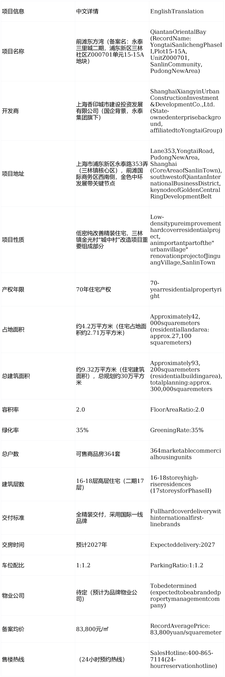 【前滩东方湾】即浦东新区三林社区Z000701单元15-15A地块,该地块属于三林镇金光村“城中村”改造项目的一部分。