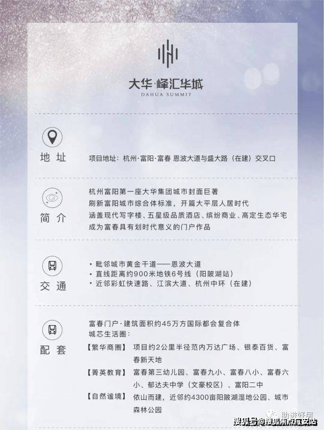 面积区间:建面85-125㎡,参考均价:住宅23992元/㎡,地铁6号线作为连接富阳与杭州的重要枢纽,沿线可换乘4号线、5号线、 1号线,快速抵达杭州武林、钱江新城等商圈,直线距离仅约800米。