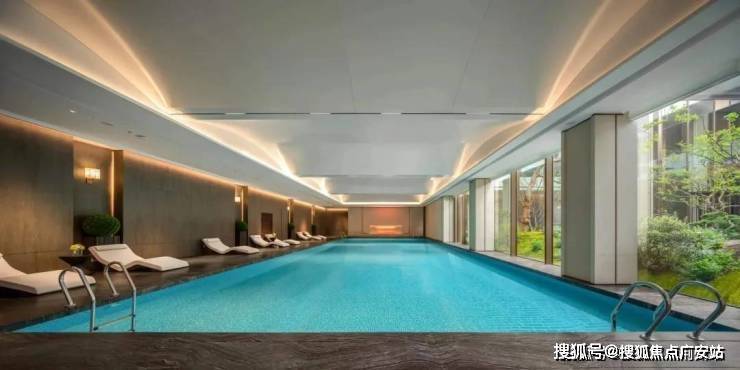 在馆里,有休闲会客区,环境优雅。有恒温泳池,是以度假酒店为灵感设计的,通透的落地玻璃窗下与下沉庭院景观相互渗透,实现一年四季畅游的“游泳自由”。