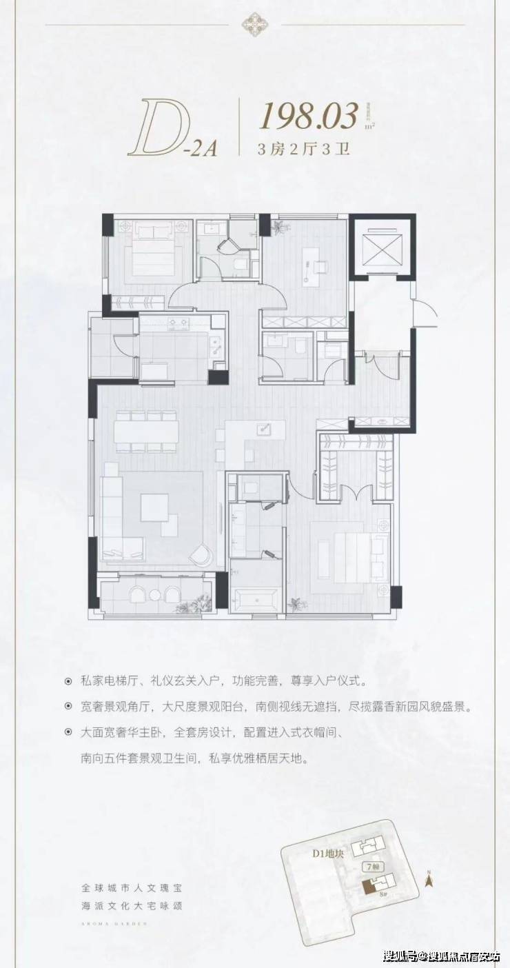 高层公寓:约159-224㎡三/四房(共86套),主打270°视野转角边厅与中西双厨设计,LDK客餐厨一体化,重塑社交主场;部分户型赠送露台,可种植花草,延续“露香园”的园艺传统。