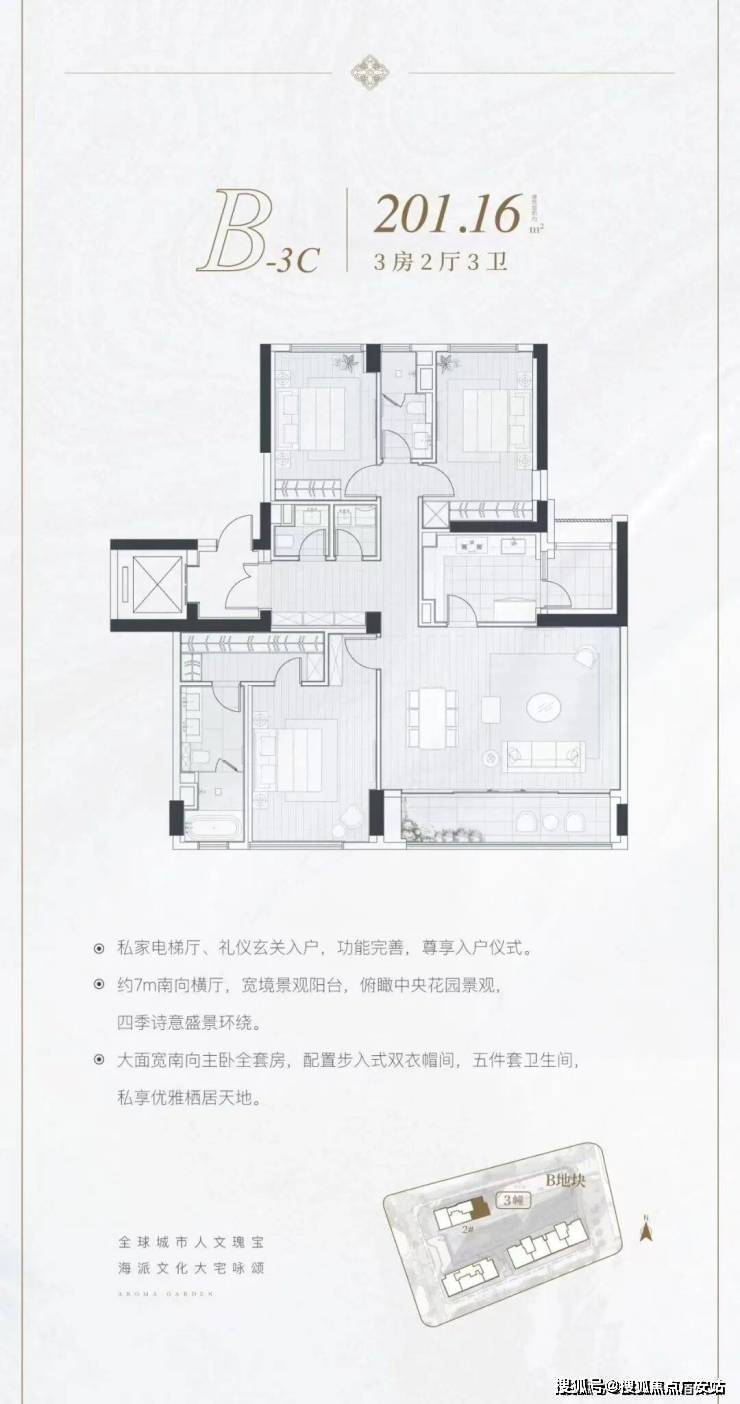 定位:约3.8万㎡纯粹高层住宅,3梯2户设计,圈层纯粹。