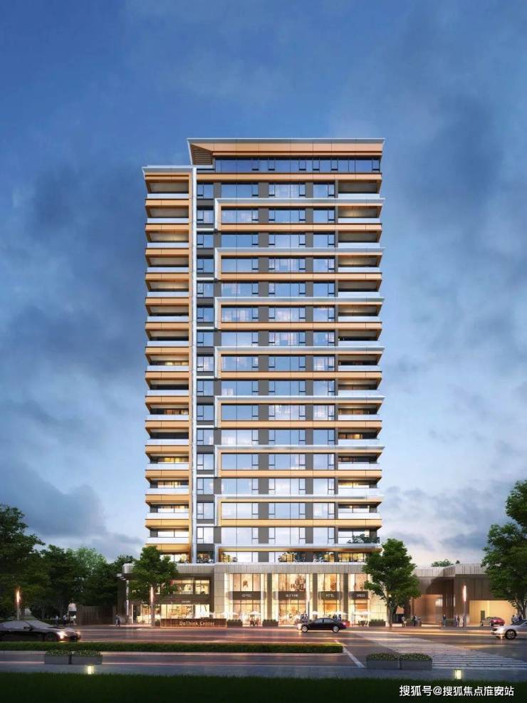 整个园区由3幢高层半围合而成,外立面由日清设计操刀,大面积玻璃+铝板+石材,点缀斜切+香槟色金属线条,极具辨识度。