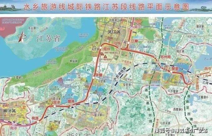 苏州南站距本案约𝟕公里。通苏嘉甬铁路、沪苏湖铁路交汇,未来汾湖前往上海仅𝟐𝟎分钟。