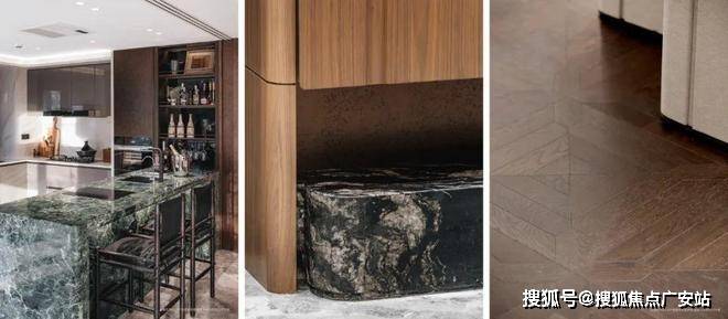 普拉达绿+古奇黑大理石:冷石配暖木,刚柔并济的奢华美学。