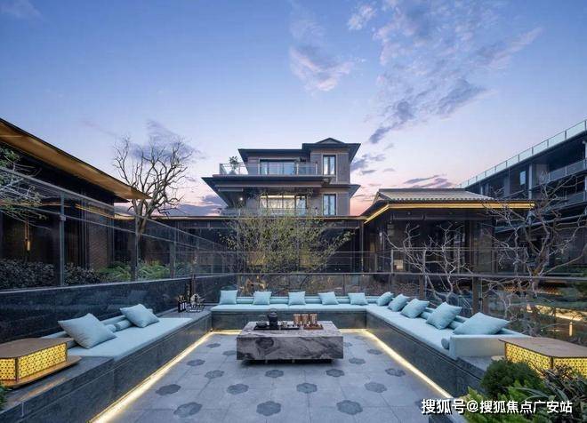 立体院居,功能臻配:叠墅与合院的奢享尺度建筑整体采用蓝眼睛石材、铝板、玻璃幕墙等材质,搭配香槟金和古典灰,为建筑增加高贵、庄重的气质。
