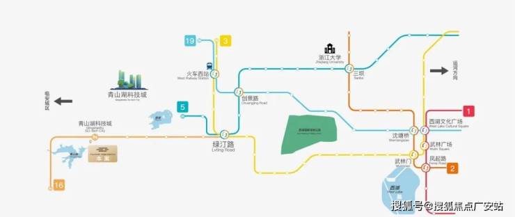 地铁16号线:直距约300m即「青山湖科技城站」,2站接轨未来科技城2.0—南湖科学中心,6站即达绿汀路TOD;绿汀路站换乘地铁3号线、5号线,直达杭州西站,畅享武林、新天地、钱江新城等商圈。