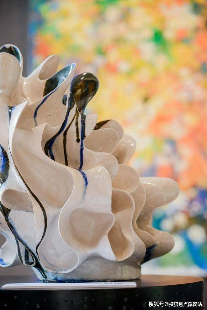 比如:根据周边美院、音乐学院等艺术人文院校汇集的艺术特色,在公区做了艺展空间。光美院老师的雕塑作品就摆了好几个,甚至还有墙上的画作,目前是有艺术家在这里举办小型展览的,未来交付之后,业主也可以根据自己的审美、特长,自由替换这些画作,邀请邻里共赏,整个小区的氛围都是高雅的。
