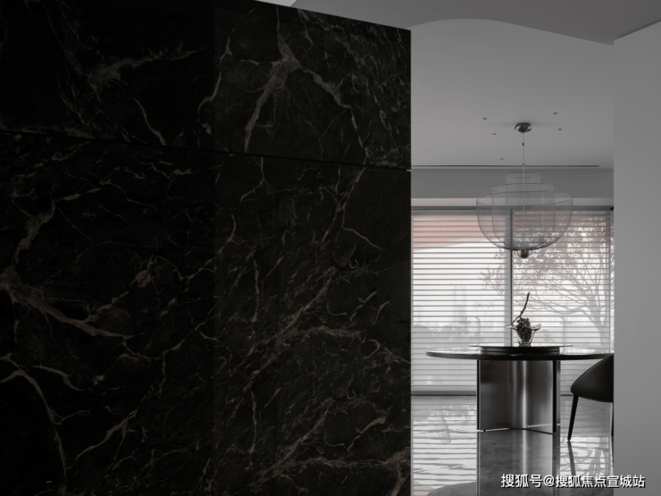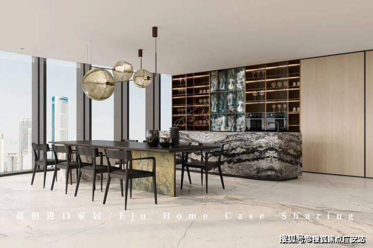 迎合年轻居住者的生活饮食习惯,做开放式厨餐区,在石材和金属之间寻迹新的对话。