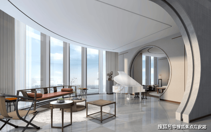 【270°IMAX环幕视野】:270°观景面,超深阔厅组合空间,全落地玻璃窗,奢华江景视野,日月同辉江河摩天,揽阅亚奥朗阔风光