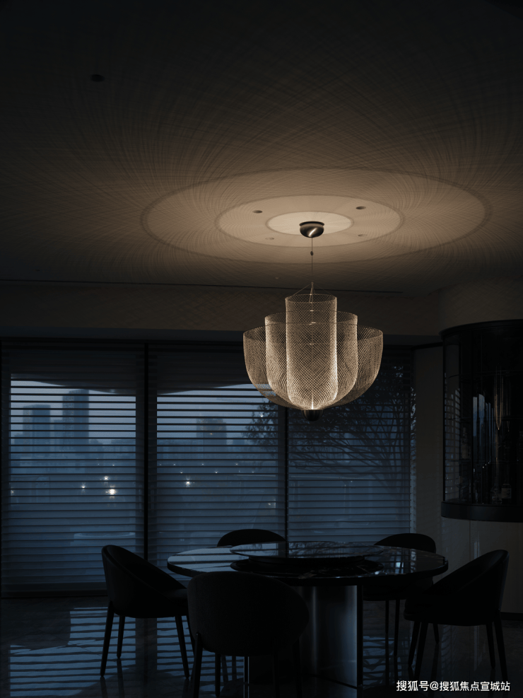 借以Moooi的枝形吊灯向整个开放区域投放出细腻的美感,即便是金属质地却丝毫没有硬朗的质感,光线通过铁丝网散射,营造出温馨而梦幻的氛围。