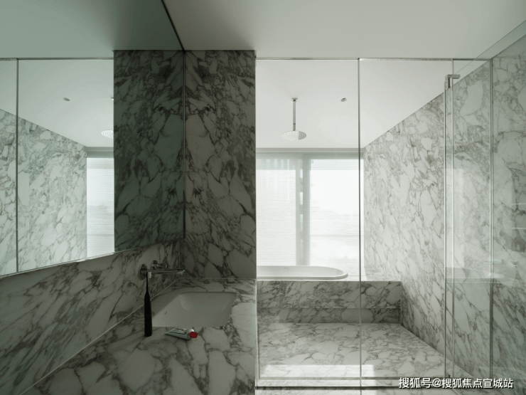 卫浴:瑞士劳芬、德国汉斯格雅/高仪,智能马桶、双台盆、进口大理石饰面,观景按摩浴缸