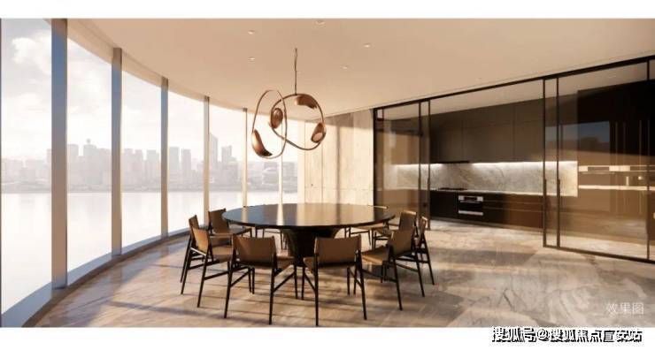 开放式中西餐厅是天然的派对厅,光影与风景延至室内,餐厅亦可无遮挡瞰江,餐厅围坐,共享家族阖乐,宴飨宾朋,社交聚会从容优雅,别人的向往,是此处的日常。