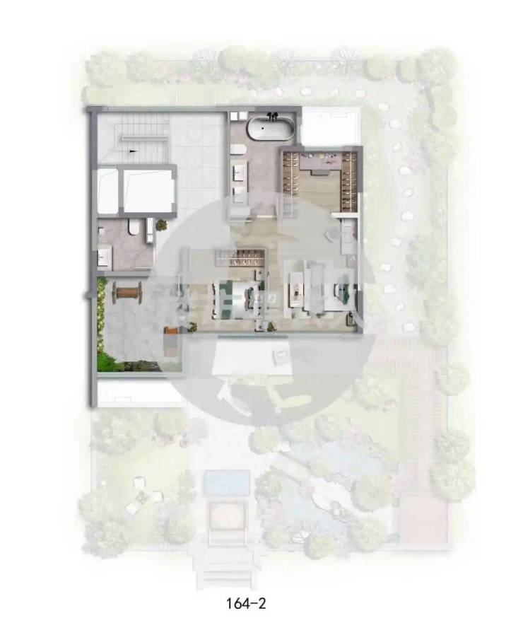 二层双卧朝南,长进深短面宽,全明设计,主卧起居室→衣帽间→卫浴间层层递进。